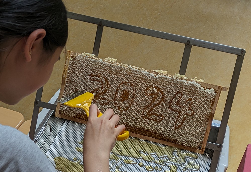 Leider haben wir nicht so viel Honig geerntet wie erhofft, sodass noch kein schulweiter Verkauf erfolgen konnte. Wenn die Bienen weiter fleißig sind, steht aber vielleicht noch eine Sommerernte an, dies hängt stark vom Wetter und dem Nahrungsangebot ab.